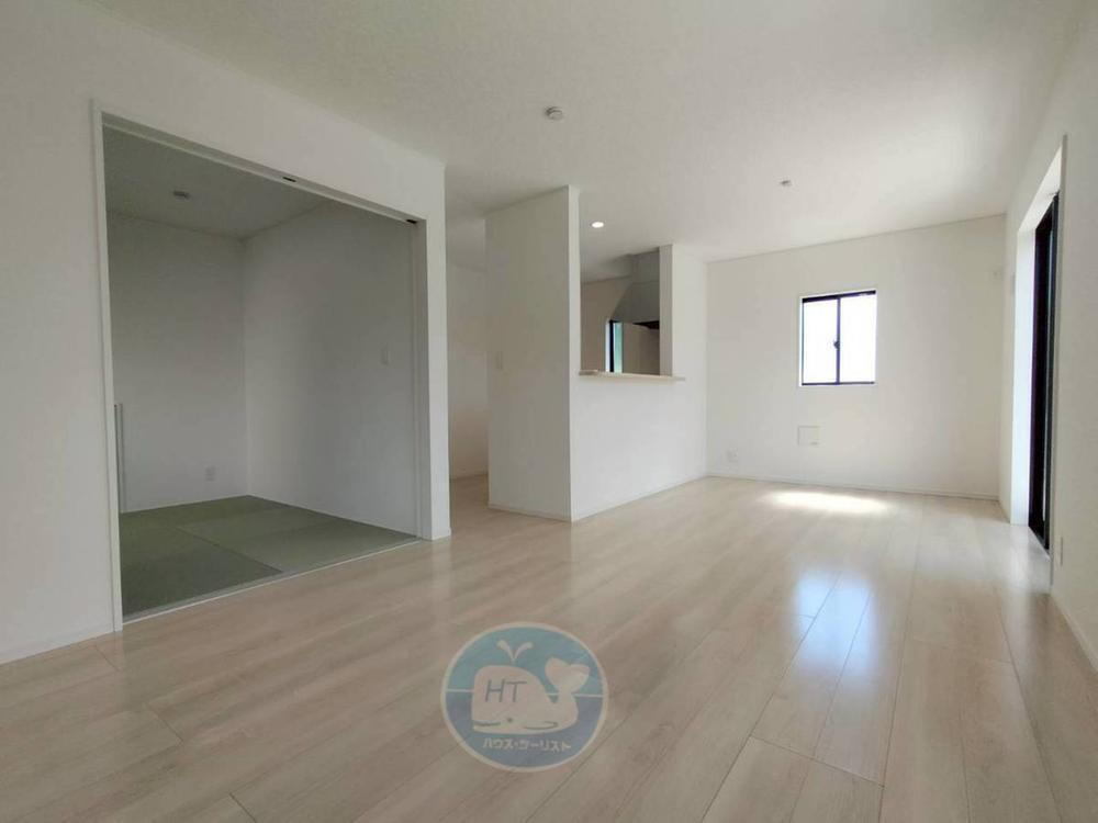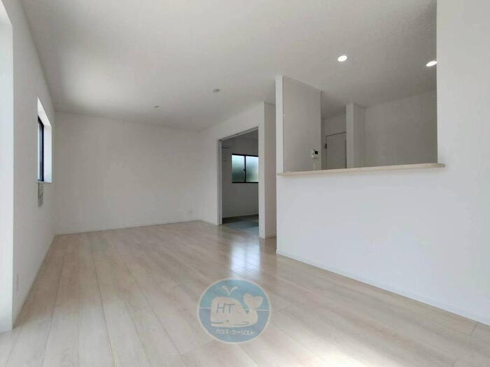 【2号棟】 広すぎないから、家族の距離がぐっと近づく16.2帖のリビング♪ まだ何もないこのリビングに、笑い声やぬくもりが溢れていく。 はじめの一歩を踏み出す、特別なステージ。