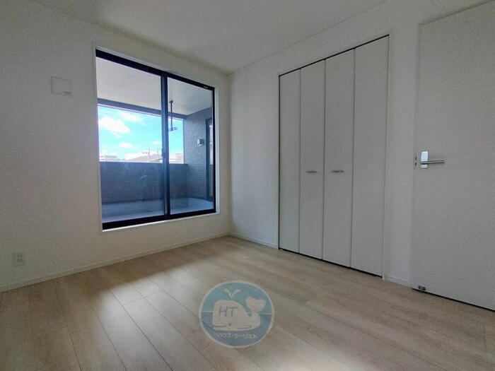 【洋室4.5帖】 光がやさしく踊るクリーム色のフローリング。 「限られたスペースを、賢く活かす。」 全居室に収納付きで、スッキリとした生活が無理なく続きます。