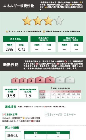 | 省エネ性能表示 | エネルギー消費性能:★★★ 断熱性能:5段階 |