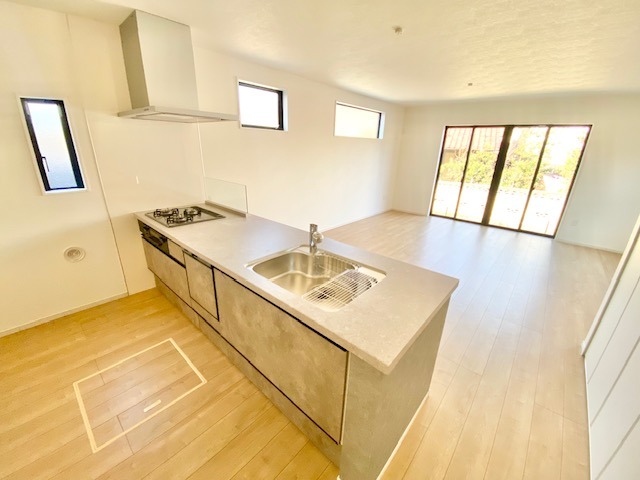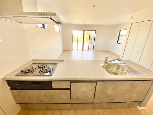 広々としたカウンターキッチン。夫婦やお子様と一緒に料理をしても十分な広さです。