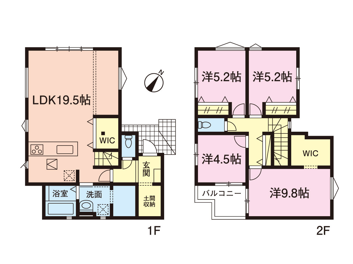 | 間取 | 4LDK (LDK19.5帖、洋室9.8帖、洋室5.2帖、洋室5.2帖、洋室4.5帖) | ||