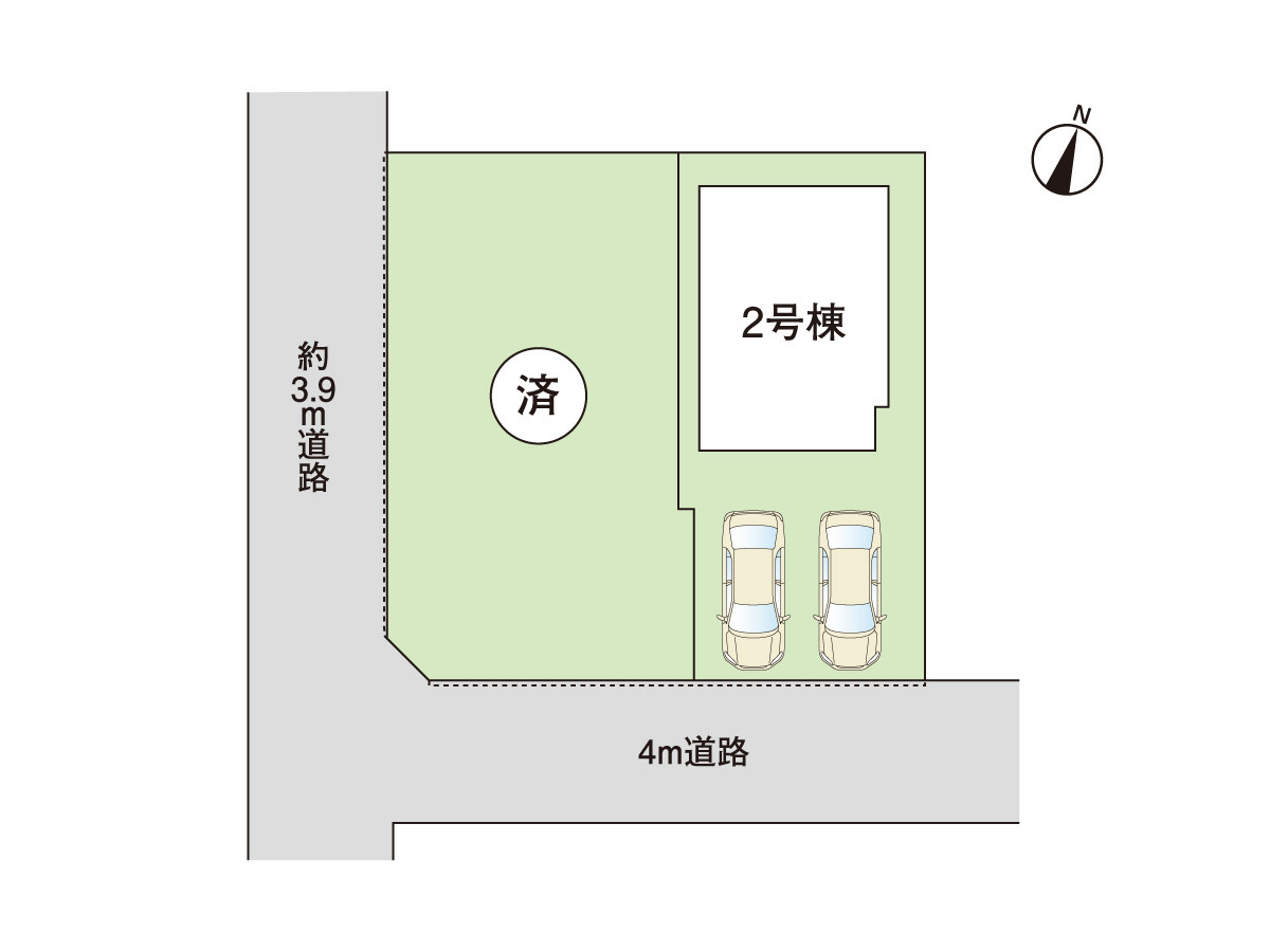 駐車スペースは2台分ご用意しています。舗装済みのため草刈り等の面倒なお手入れも必要ありません。