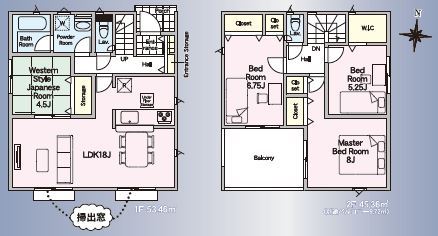 | 間取 | 4LDK (和室4.5帖、洋室6.75帖、洋室5.25帖、洋室8帖) | ||
