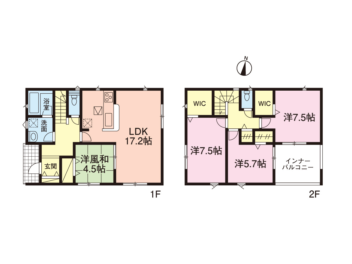 | 間取 | 4LDK (洋室7.5帖、洋室7.5帖、洋室5.7帖、和室4.5帖) | ||