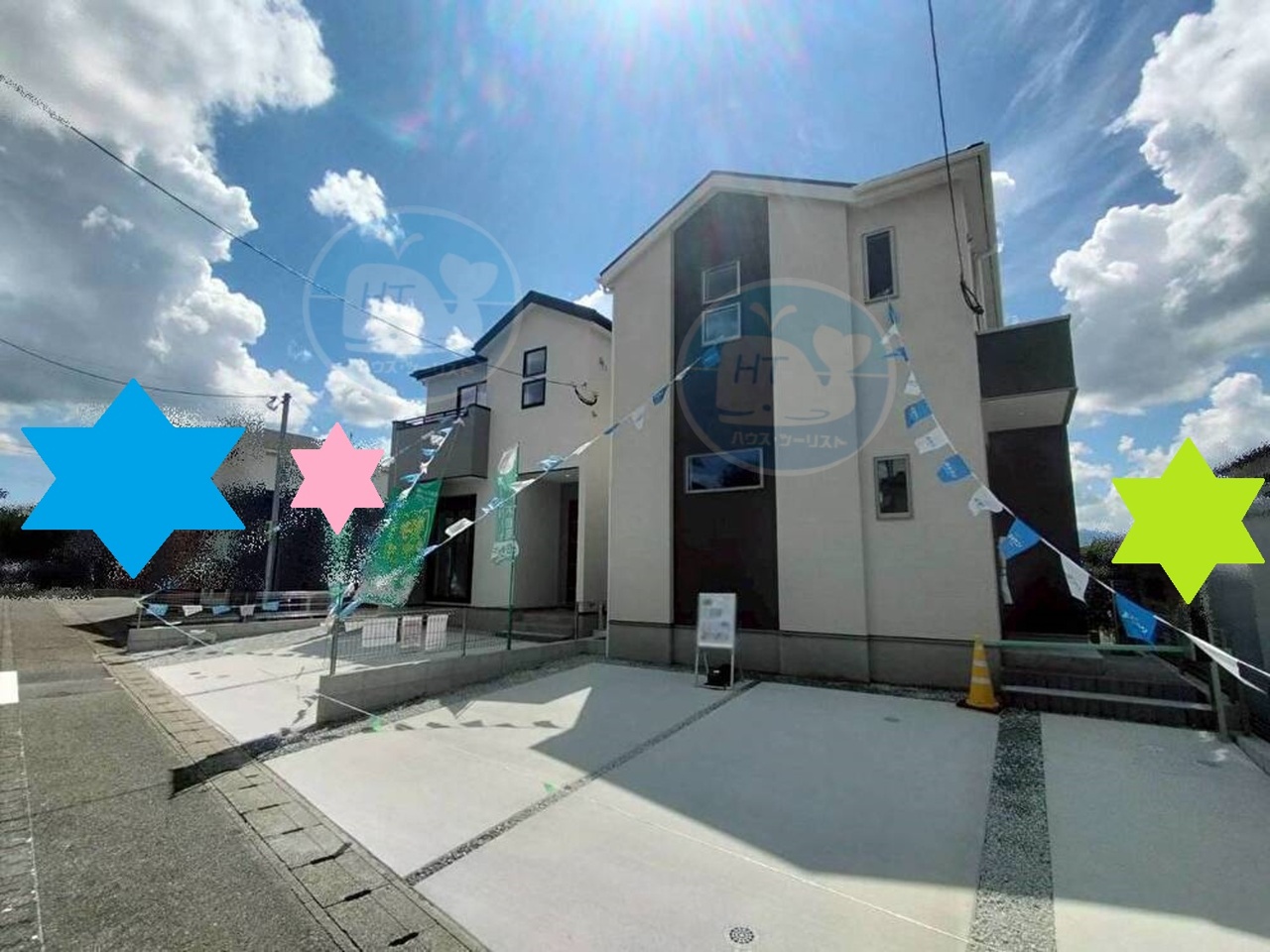【全体写真】 左が1号棟◇右が2号棟 理想をカタチにした住まい。未来へ続く一歩がここに。 平日もご見学可能です◎ ご質問等ございましたら、お気軽にお問い合わせください☆