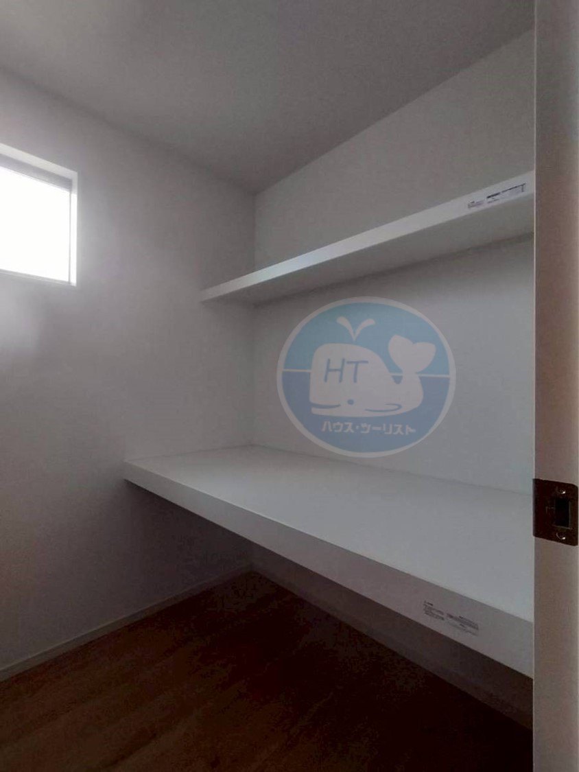 【2F・収納】 棚とカウンター付きで、しまう・置くが一度に叶う実用的収納。自然と片づけ上手になれる工夫が詰まっています。