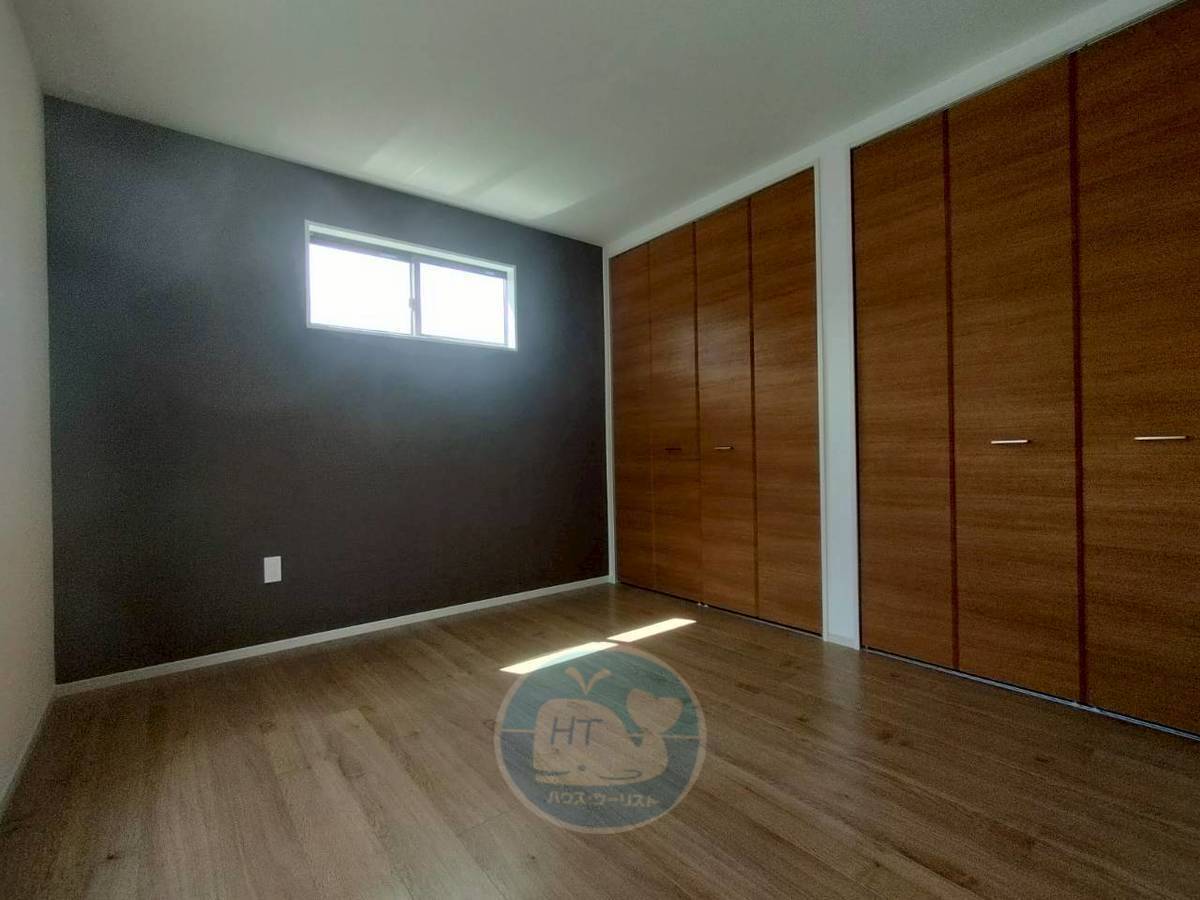【洋室9帖】 「暮らしに彩りを添える、アクセントクロスの魔法」 2階にひときわ広がる、9帖のプライベート空間。夫婦の会話も、ひとりの読書も。