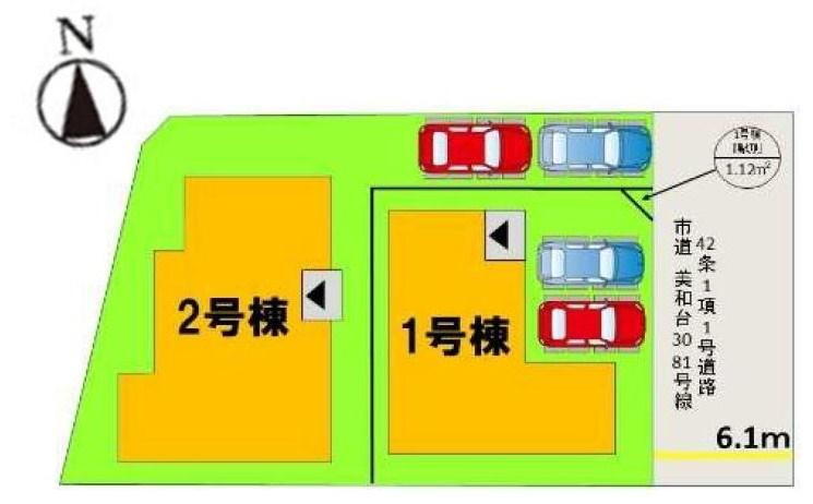 駐車が苦手な方には嬉しい幅員広々6.1m! 2台駐車可能で、共働きのご夫婦やセカンドカーをお持ちの方も安心です☆