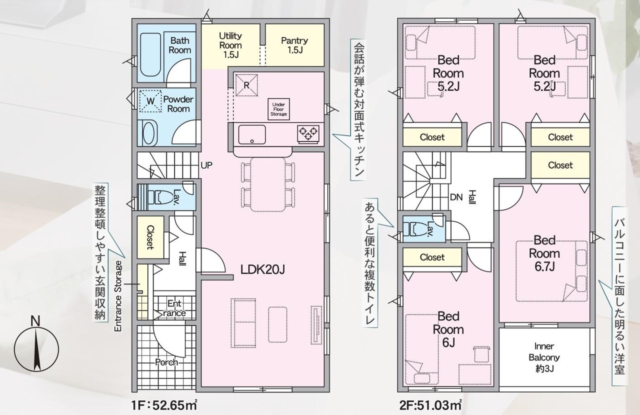 | 建物面積 | 93.55m² ~ 103.68m² 実測 | ||
