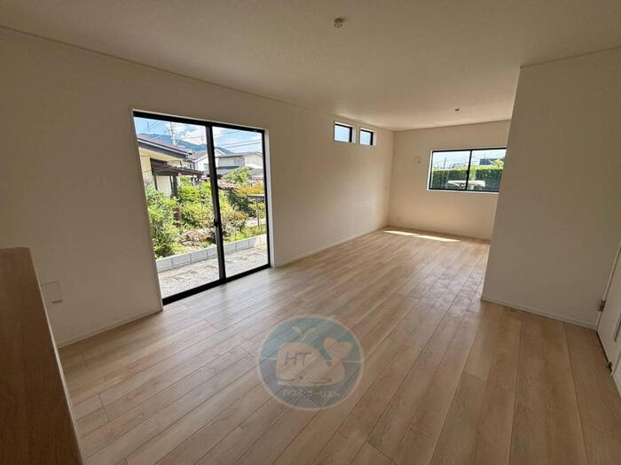 【2号棟】 何気ない日々が、家族の特別な時間に変わる場所。 まだ何もないこのリビングに、笑い声やぬくもりが溢れていく。 はじめの一歩を踏み出す、かけがえのないステージ。