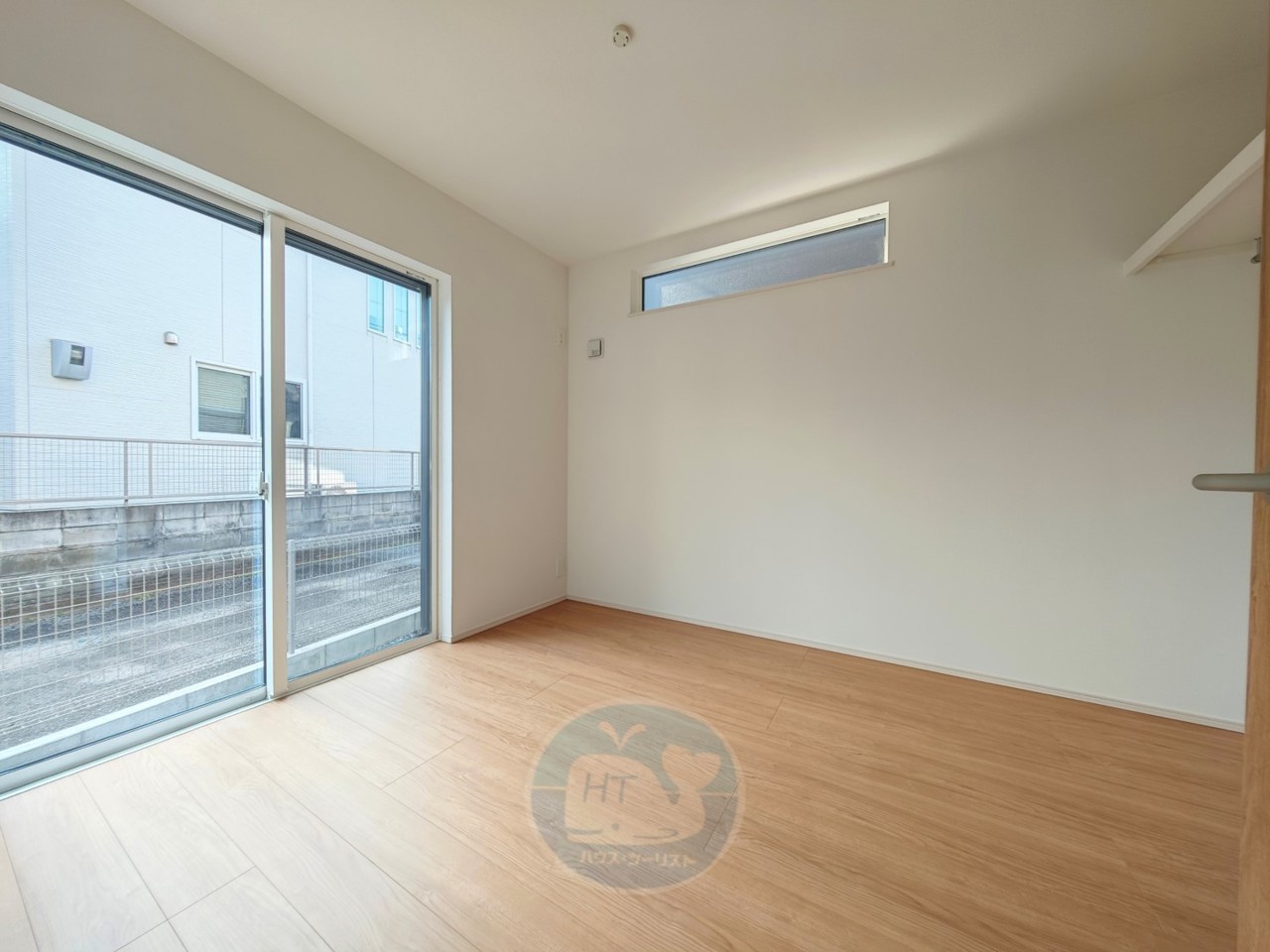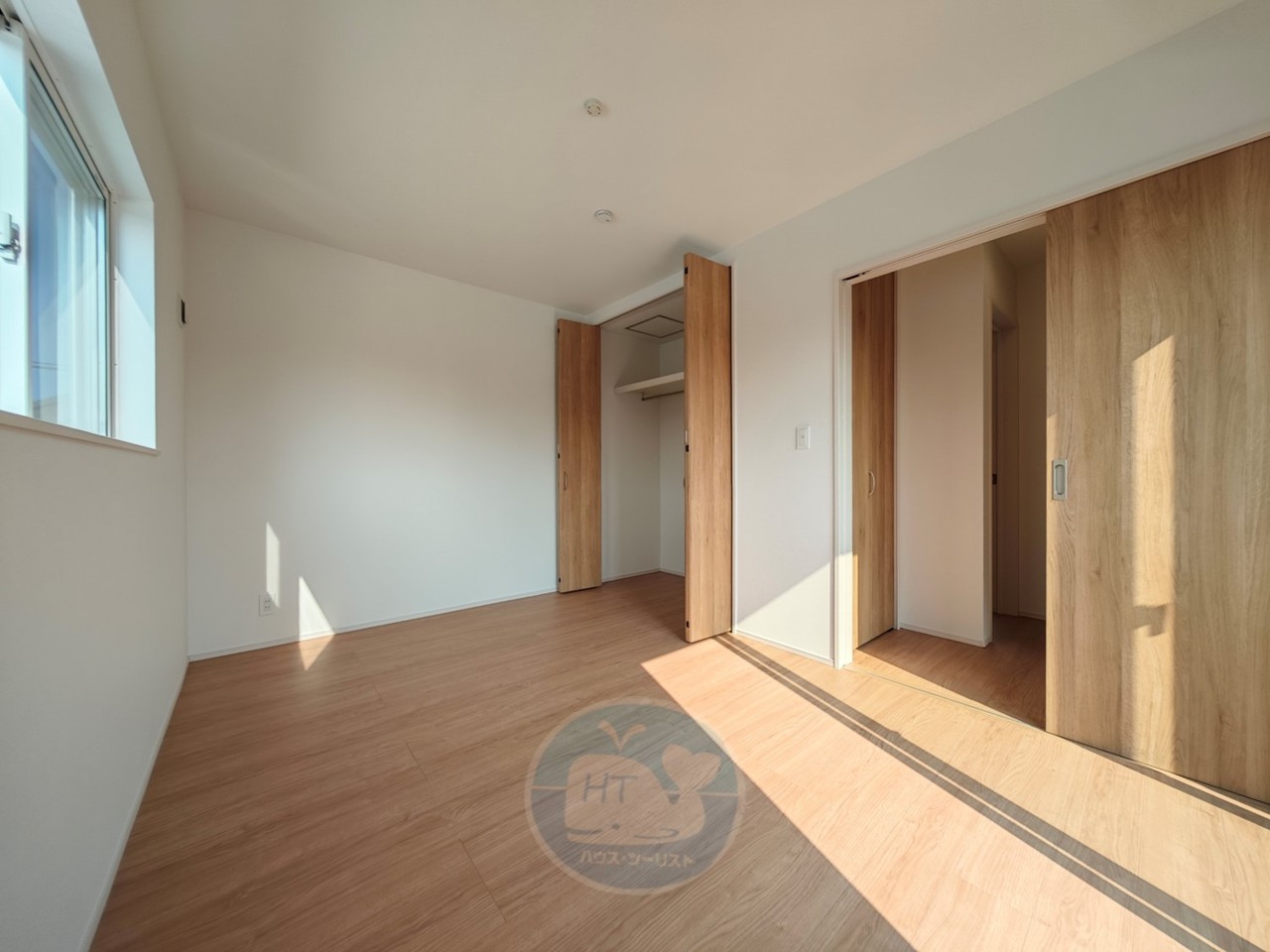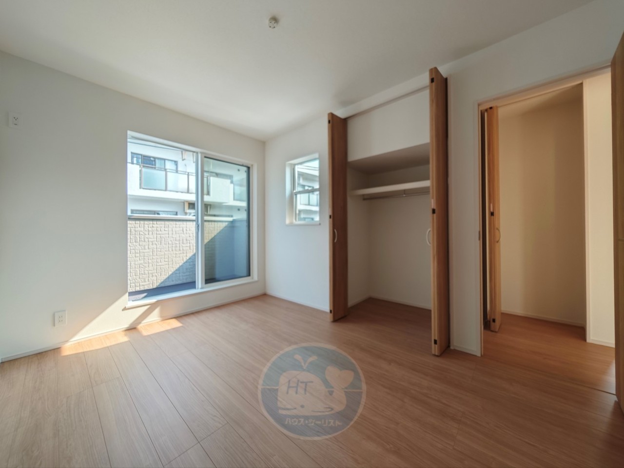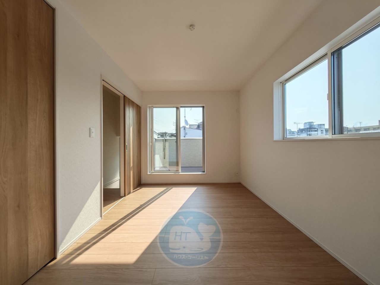 【3F・洋室6.75帖】 2面採光の明るいお部屋に、爽やかな風が通り抜けます。 全居室に収納を完備し、スッキリとした生活が無理なく続きます。